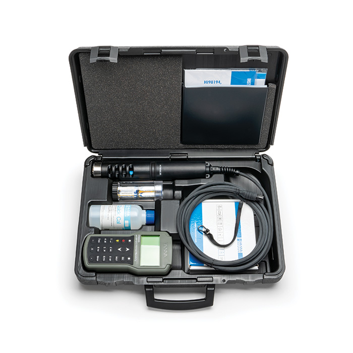 HI98195 je vodootporni prenosivi multiparametarski merač koji prati do 10 različitih parametara kvaliteta vode uključujući 5 izmerenih i 5 izračunatih. Višesenzorska sonda zasnovana na mikroprocesoru omogućava merenje ključnih parametara uključujući pH, ORP, provodljivost i temperaturu. Sonda digitalno prenosi očitavanja do merača, gde se tačke podataka mogu prikazati i evidentirati. Kompletan sistem je jednostavan za podešavanje i lak za korišćenje. HI98195 se isporučuje sa svim potrebnim dodacima i upakuje se u izdržljivu torbicu za nošenje.